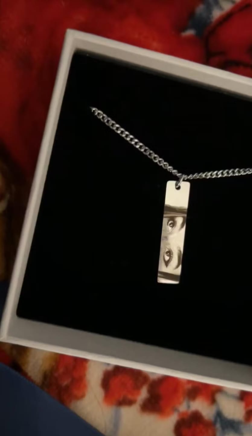 Recibí este collar como regalo de mi novia, tiene una mirada tan hermosa que nunca puedo dejar de mirarla